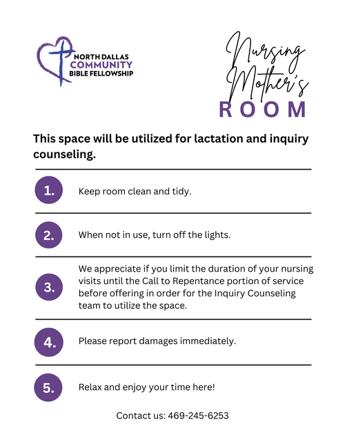 We are excited to announce that we will be reestablishing our Nursery for infants and, in addition, classes for kids 12 months to 3 years old. We are even more excited to announce that the Nursing Mothers' Room is complete and ready to open as of July 14! The room is to be used exclusively by nursing mothers for private feeding, in addition to inquiry counseling towards the end of service.